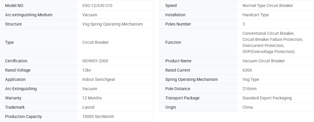 Прекинувачот за вакуумско коло VSG е нов прекинувач за затворен простор. Главно се користи за трифазен систем за напојување со AC со номинален напон од 12kV и номинална фреквенција од 50-60Hz. Има предности на компактната структура, висока сигурност, мала работа вибрации и лесно одржување. Може да се користи широко во електрани, челични мелници, металургија, петрохемиски, транспорт, згради и други индустриски и рударски претпријатија. Како прекинувач за заштита на високо-напонски мотори, трансформатори, грешки во линијата и други товари.