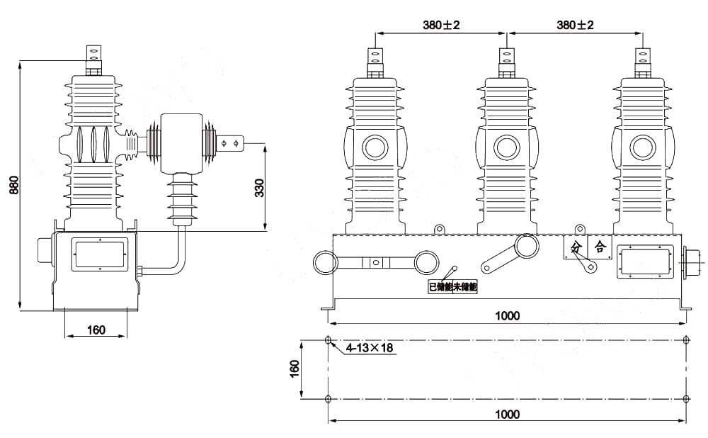 3. Оперативниот механизам е пролетен оперативен механизам, кој може да биде рачен или електричен. Кога е потребно, може да се додаде оперативен уред за далечински управувач и уред за да се избегне затворање на струјата на вметнување. Потребната моќност на надворешно напојување не е повеќе од 70W, што е лесно да се опремени со резервно напојување. Тампон -уредот со уникатен дизајн има одлични перформанси, мал скок и низок шум.