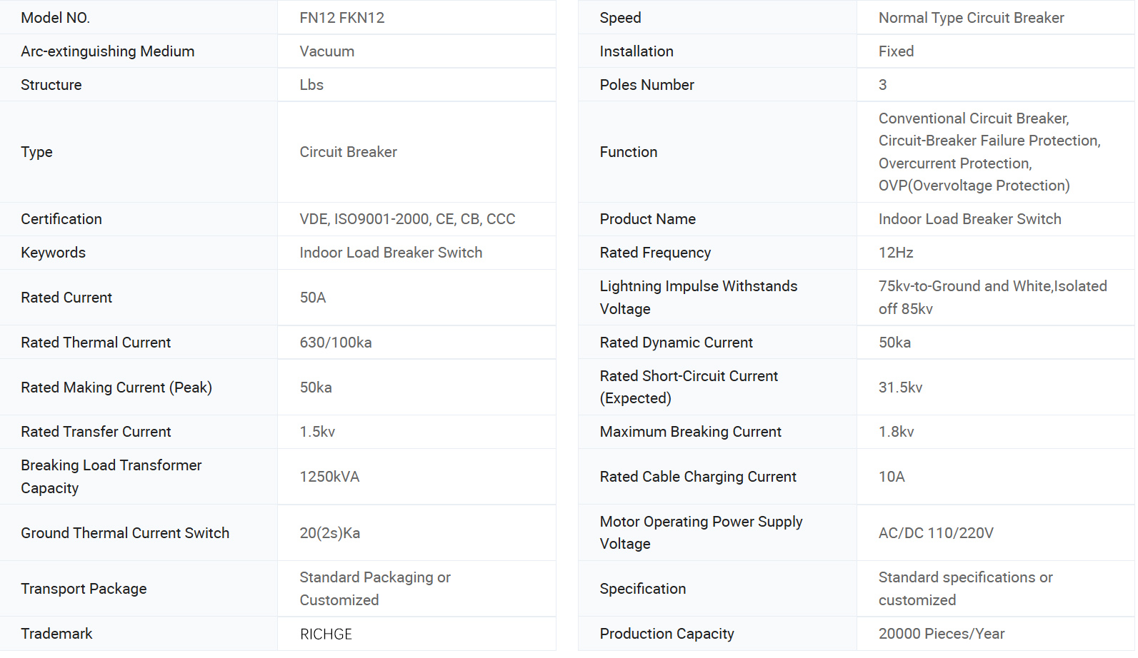 FKN12-12D/630-20 внатрешен AC високонапонски прекинувач за оптоварување е трифазен високонапонски разводен уред со номинален напон од 12KV и номинална фреквенција од 50HZ. Се користи за префрлување на струја на оптоварување, струја на затворена јамка, трансформатор без оптоварување и струја за полнење на кабел, исклучување комбинирана струја на краток спој. Прекинувачот за оптоварување опремен со прекинувачот за заземјување може да издржи струја на куса врска. и m-главно се користи во трафостаницата за дистрибуција на електрична енергија и индустриската електрична опрема каде трифазното коло со затворена јамка или долниот систем за напојување за контрола и заштита.