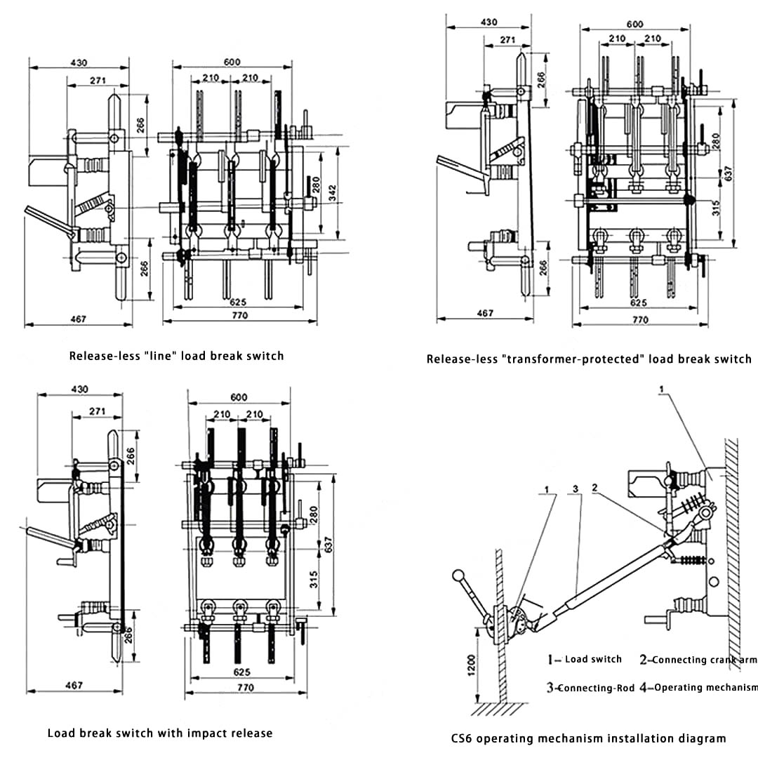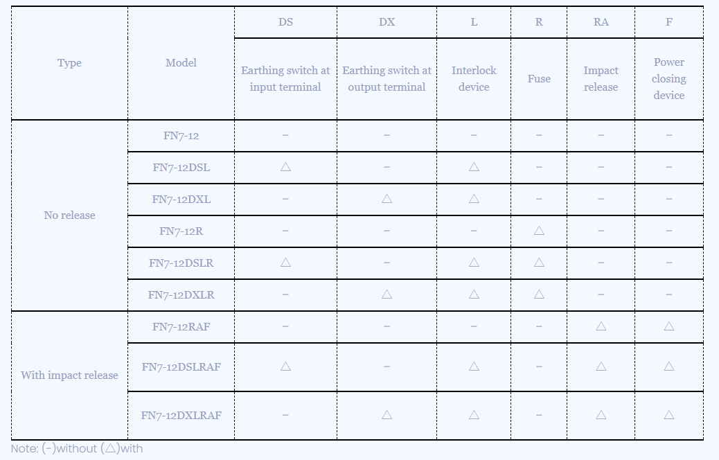 Високонапонскиот прекинувач за оптоварување и комбинацијата на осигурувачи од серијата FN7(C)-12 се базираат на високонапонскиот прекинувач за оптоварување од серијата FN7-12, додавајќи страничен оперативен механизам, што ја прави инсталацијата поедноставна и поудобна и може да ги задоволи различните барања на корисниците