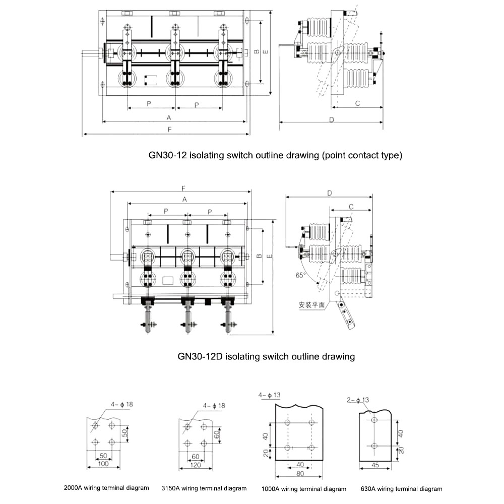 Вртлив внатрешен високонапонски прекинувач за исклучување од типот GN30-12 (D) е нов тип изолациски прекинувач од типот на ротирачки нож, главната структура е фиксирана две групи на изолатор и контакт на двете рамнини на трифазна шасија, преку ротациониот контакт, реализирајте го прекинувачот за вклучување-исклучување. Прекинувачот од типот GN30-12 (D) е нов тип на додаден заземјувачки нож на основата на прекинувачот од типот GN30-12, кој може да ги задоволи потребите на различни електроенергетски системи. Дизајнот на производот е со компактен, мал зафатен простор, силна изолациска способност, лесна инсталација и прилагодување, неговите перформанси ги задоволуваат барањата GB1985-89 „AC висок напон изолациски прекинувач и прекинувач за заземјување“, применливи за номинален напон 10kV AC 50Hz и под внатрешен електроенергетски систем, за да се отвори и затвора системот за напојување во затворен простор. Може да се користи со високонапонскиот прекинувач, а може да се користи и одделно.
