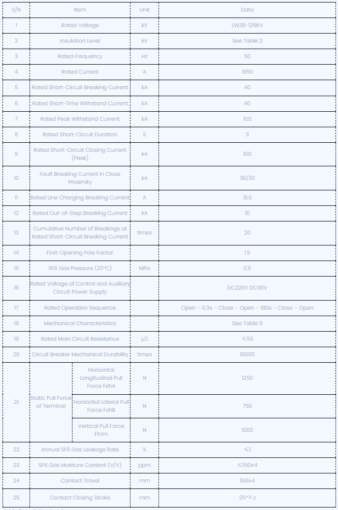 Овој производ користи SF6 гас како лак за гаснење и изолација на лак. Опремена е со најновата технологија за гаснење на лакот и има нов механизам управуван од пролет. LW36-126/3150-40 нуди долг електричен живот, низок напор за работа, низок шум и голема сигурност, што го прави најсигурен избор за области со голема надморска височина или системи за напојување од 132KV. Исто така, може да ги замени увезените производи од ист тип.