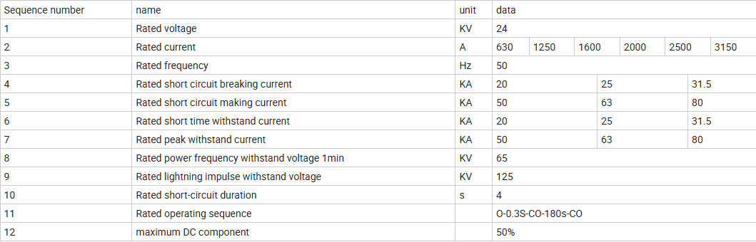 Главното спроводливо коло од вакуумско прекинувач на вакуумско коло со пролетен механизам е вграден пол, што може во голема мерка да ја подобри веродостојноста на изолацијата, механичките и кршењето на перформансите и навистина да ги реализира слободното одржување и подолг механички и електричен живот. Способноста достигнува оценка на M-E2-C2.
