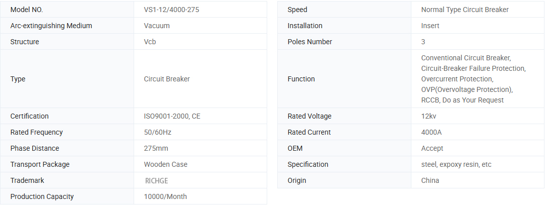 Прекинувачот VS1-12/4000-275 вакуумско коло е компонента со средна напон со високи перформанси, дизајнирана за барање индустриски и дистрибутивни апликации кои бараат сигурност, ефикасност и супериорна безбедност. Овој модел е дизајниран со исцрпување, правејќи ја инсталацијата и одржувањето лесна и удобна и одговара на различни конфигурации на Switchgear.