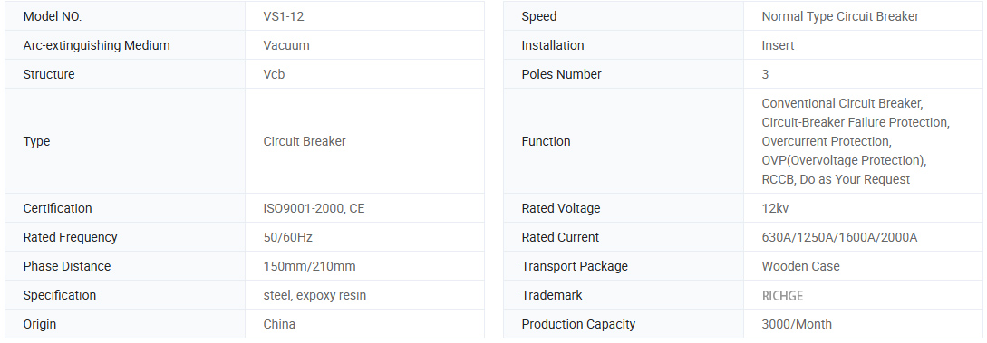 VS1 (Zn63A) -12Series на затворен вакуумски прекинувач со вообичаен изолиран цилиндер е опрема за дистрибуција на напојување со напојување со три фраза A.C. 50 Hz со номинален напон од 12KV. Се користи за заштита на контролата на електричната опрема во областа на индустријата и рударското претпријатие, електрани и трафостаници. Овој прекин на вакуумското коло на типот е во согласност со националните стандарди и прописот на IEC стандардот, способноста достигнува оценка на M2-E2-C2.