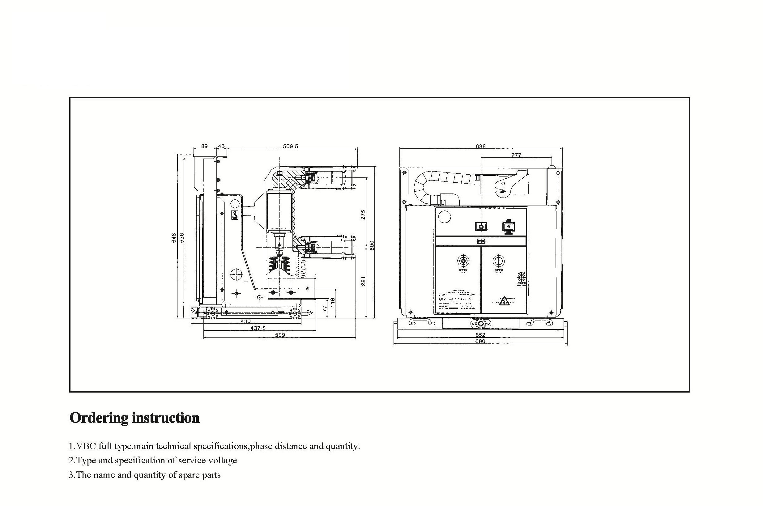 VSG-12 Внатрешен прекинувач на вакуумско коло во затворен напон (Абб. This product is in accordance with GB1984-2003( high voltage A.C. circuit breaker),JB3855-1996 (3.6-4.5KV indoor A.C. high voltage circuit breaker), DL403-2000(technical conditions for ordering of 12-40.5KV high voltage vacuum circuit breaker) and IEC standard 62271-100:2001( high volage А.Ц. прекинувач). Може да се користи за заштита и контролирање на опрема во мрежната опрема и динамичен дизајн на индустриско и рударско претпријатие. Тоа е погодно за префрлување на оптоварување и честа работа со различно својство и со можност за многу пати работење на кршење на струјата со краток спој.
