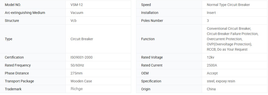 Прекинувачот за вакуумско коло VSM-12 интегрира постојан механизам за работа со магнет и вакуумски прекинувач во конфигурација на предната и оган. Прекинувачот има дизајн на типот на извлекување со фиксна колона што се менува со лак (цврсти столбови за запечатување) и е дизајниран за голема сигурност и перформанси во бараните електрични околини.