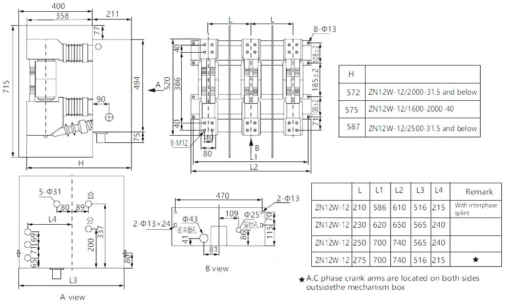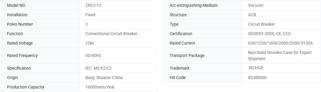 Прекинувачите на вакуумско коло на серија Zn12 се затворен напон за прекинувач со високи напони со номинални напони од 12kV, 24kV и 40,5kV и трифазен AC 50Hz. Тоа е домашен производ развиен со воведување на германска технологија Сименс 3АФ. Оперативниот механизам на прекинувачот на колото е пролетен вид на складирање на енергија, со кој може да се управува со AC или DC, или рачно. Прекинувачот на колото има едноставна структура, силен капацитет на кршење, долг животен век и целосни функции на работа. И не постои опасност од експлозија, а одржувањето е едноставно. Тој е погоден за прекинувач за контрола или заштита на системите за пренос и дистрибуција на електрична енергија, како што се електрани, трафостаници и индустриски и рударски претпријатија, особено погодно за кршење на важни оптоварувања и чести места за работа. Формата за инсталација на прекинувачот во прекинувачот во кабинетот на прекинувачот може да биде или фиксен тип или прекинувач на кола што може да се повлече од типот.