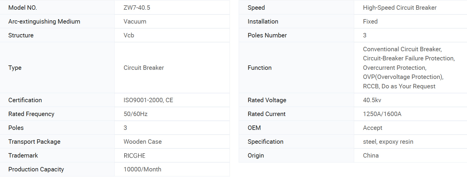 Прекинувачот на вакуумско коло на ZW7-40,5 на отворено со високо напон на отворено усвојува уникатно дизајниран сплит пол и високо сигурен оперативен механизам. Уредот главно се користи во мрежни електрични мрежи со средна напонска линија за делење и комбинирање на струјата на оптоварувањето, струјата на преоптоварување и струјата со краток спој.